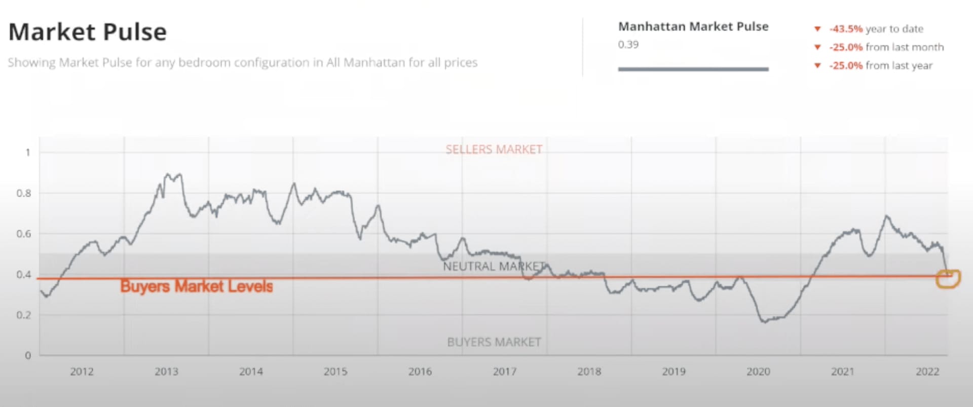 Which brings me back to the local big picture: New York is a safe investment. We have a long record of being one of the best long-term investments in the US. Home prices have nearly doubled in the last decade. Zillow predicts values to rise 4.8% by June 2023. Now if the pandemic has taught us anything it's that anything is possible. But the bottom line, if you have a way around the rate hikes, this is a great time to buy. We've just entered into a buyer's market in Manhattan this past week, strictly looking at the numbers. So the market is down, but not terribly. Brooklyn is in a neutral zone. So buyers have good leverage with low risk in both areas, as illustrated in the graphs above. And if you're a seller, the market has not plummeted as much as the headlines may make you think. New York is still in demand. It's a much calmer, enjoyable process now on both sides, compared to just a few months ago.